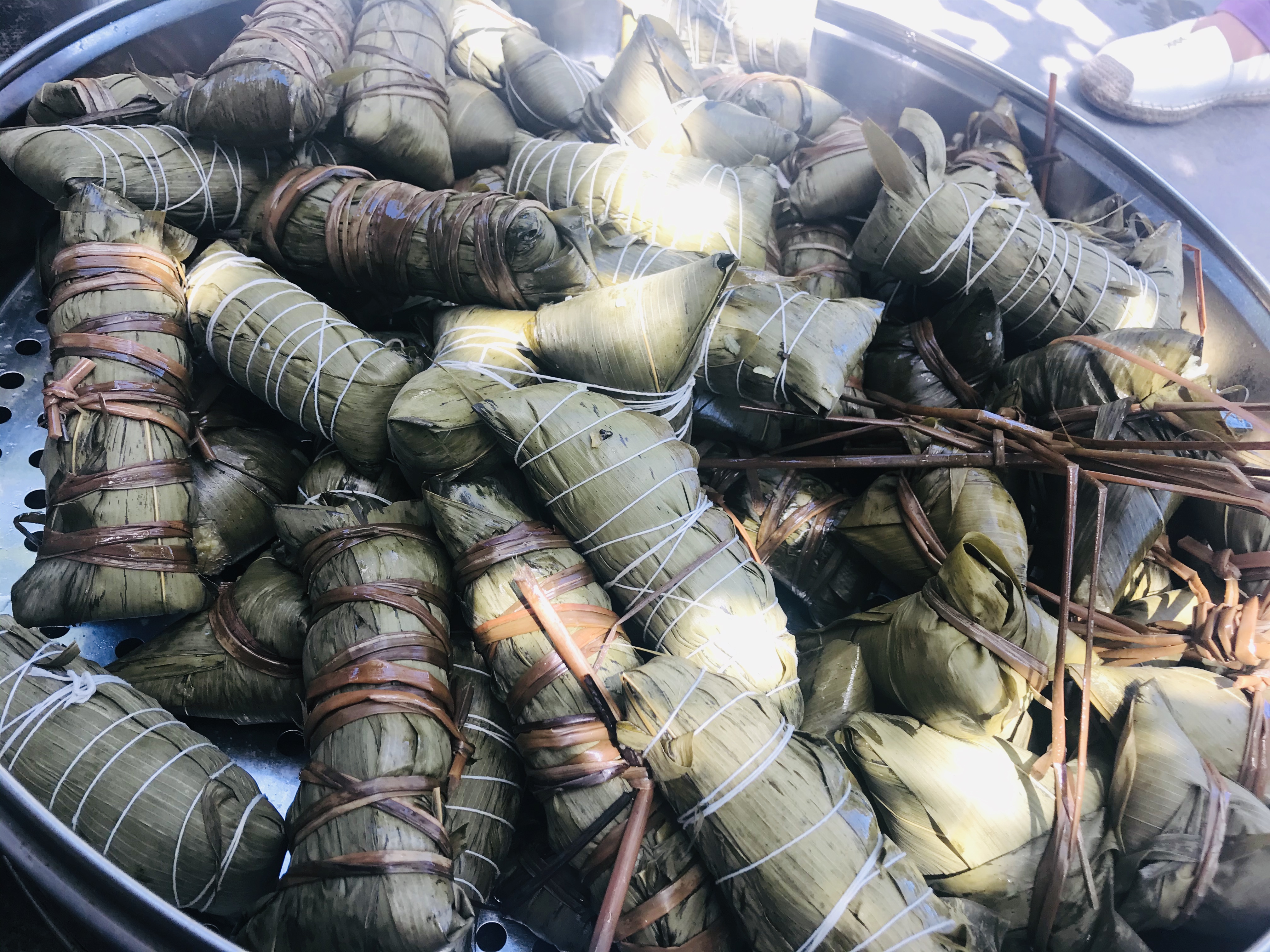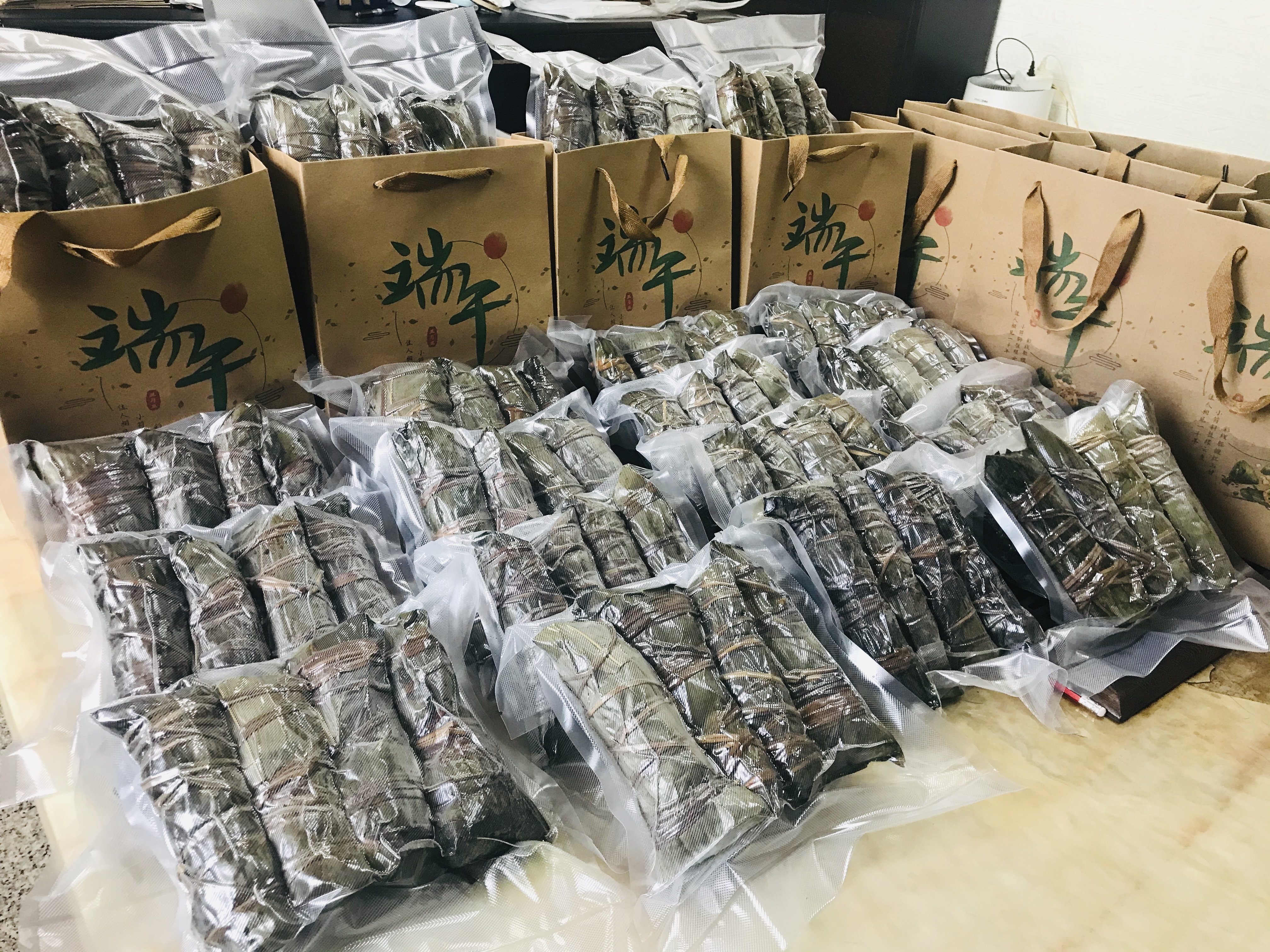 已經(jīng)煮熟打包好準(zhǔn)備派發(fā)的粽子